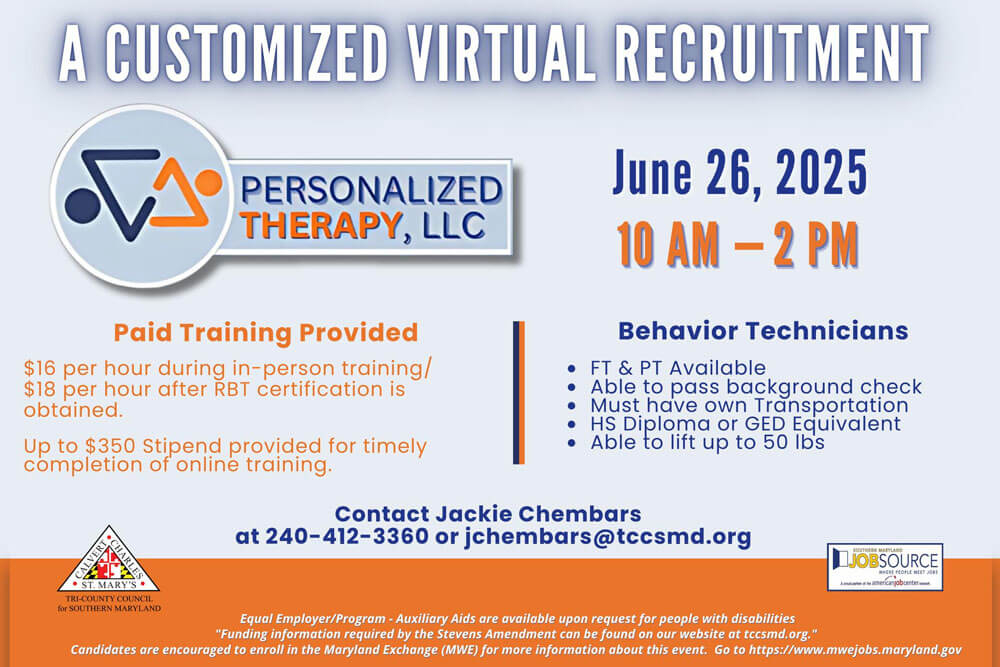 Job Fair!UncategorizedPersonalized Therapy, LLC Customized Virtual Appointment Thursday, June 19th 10 am – 1 pm Hiring: Behavior Health Technicians For An Interview Email: jchembars@tccsmd.org (view post) June 23, 2025/by Personalized Therapy, LLC https://www.personalizedtherapyllc.com/wp-content/uploads/2025/05/images_blog_job-fair.jpg 667 1000 Personalized Therapy, LLC https://www.personalizedtherapyllc.com/wp-content/uploads/2024/04/logo_header.png Personalized Therapy, LLC2025-06-23 18:01:422025-06-30 18:03:15Job Fair!